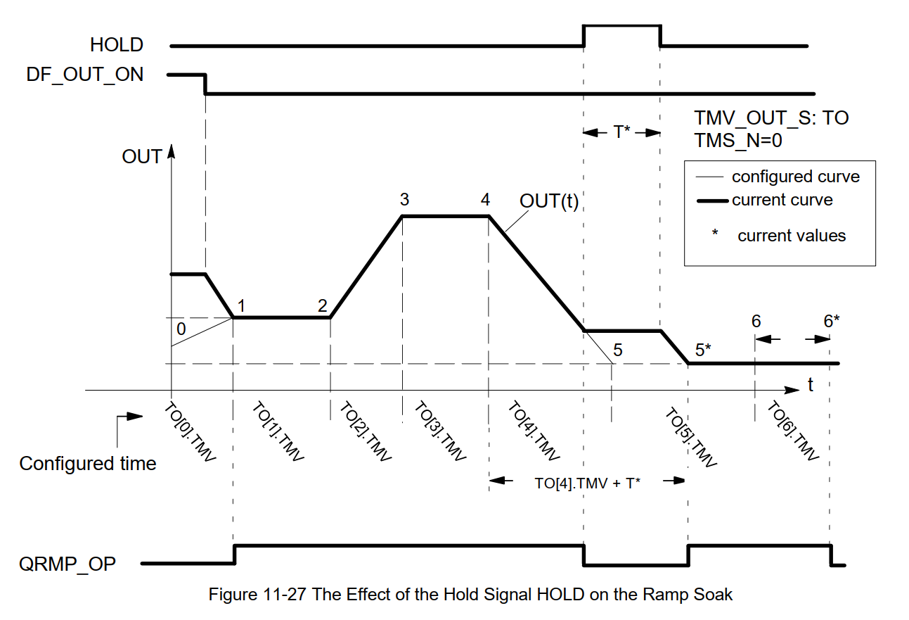 با استفاده از ورودی HOLD میتوانید خروجی را به مدت دلخواه در هر مرحله ای از اجرای پروسه، فریز کنید. به تصویر زیر دقت فرمایید: